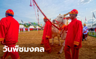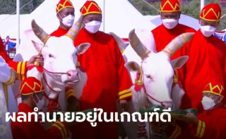 “วันพืชมงคล 2565 พระโคเสี่ยงทาย กินน้ำ-หญ้า-ถั่ว-เหล้า ผลพยากรณ์ในเกณฑ์ดี”