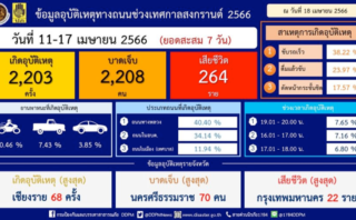 2023年4月18日 交通事故防止・軽減センター(ศูนย์อำนวยการป้องกันและลดอุบัติเหตุ)でも 2023年4月11日~17日の危険な7日間の交通事故件数、死傷者数を発表しています。