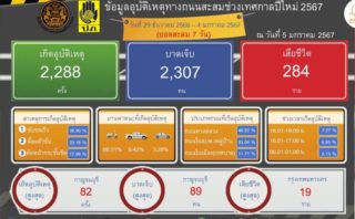 「2024年 新年の危険な7日間まとめ。死者284人。バンコクでの死者数が最多。負傷者2,307人」