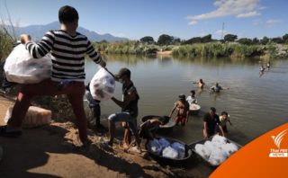 ชาวเมียนมาฝั่งไทย ส่งอาหาร 1,000 กล่อง น้ำดื่ม เสบียงในการดำรงชีวิตส่งให้ผู้หนีภัยสู้รบ ทหารเมียนมา-เคเอ็นยู ริมฝั่งแม่น้ำเมย ตรงข้าม อ.แม่ตาว จ.ตากของไทย หลังปักหลักรอลี้ภัยหากสถานการณ์ตึงเครียด แต่มีรายงานข่าวหลังปีใหม่ ทหารเมียนมาเตรียมเจรจา “เคเอ็นยู”