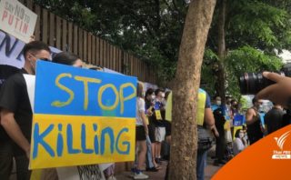 “ชาวยูเครนในไทย ประท้วงหน้าสถานทูตรัสเซียขอยุติสงคราม”